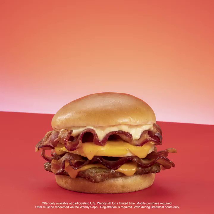 But wait theres more. New Breakfast Baconator. Through December 27th Get a free Breakfast Baconator with any purchase thru the Wendys app.